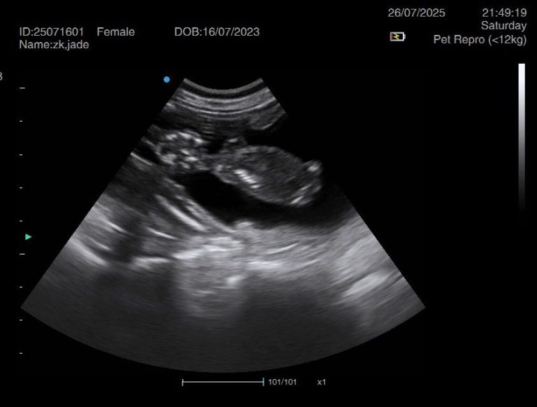 Ultrasound pregnancy scanning is a safe, non-invasive way to confirm pregnancy in dogs and cats, offering breeders and pet owners peace of mind and vital information to support responsible care. It allows us to detect gestational sacs, assess foetal development, and estimate litter size—all while ensuring the wellbeing of the animal.